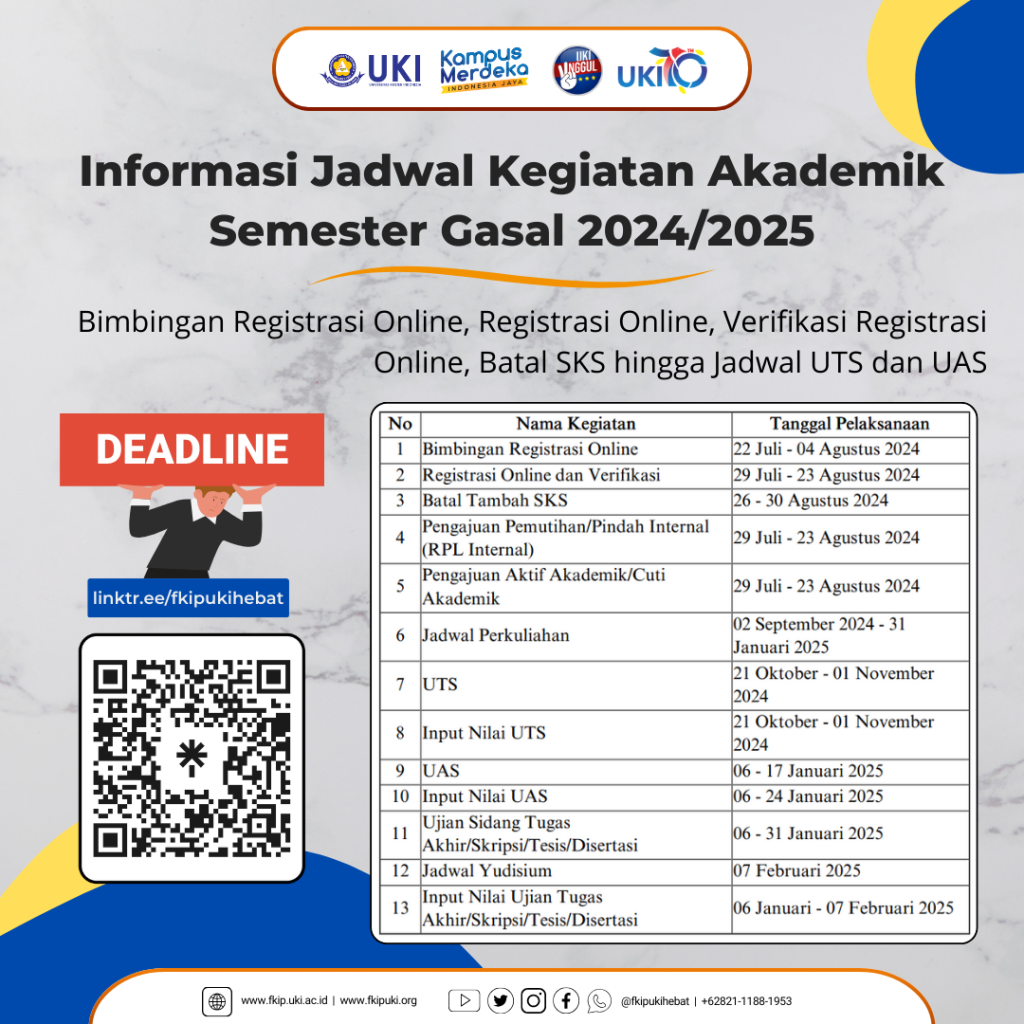 Selamat dan Sukses 98 Lulusan FKIP UKI JAKARTA (06/11/2024) - Selamat & Sukses #FKIPUKI dengan bangga mengucapkan selamat kepada 50 lulusan FKIP UKI dari 6 program studi yang telah berhasil meraih gelar Sarjana Pendidikan (S.Pd) terkhususnya untuk para lulusan terbaik berikut: 1. Novika Eriahta Sitepu dari Prodi Pendidikan Biologi2. Elen Sulastri Siregar dari Prodi Pendidikan Agama […]